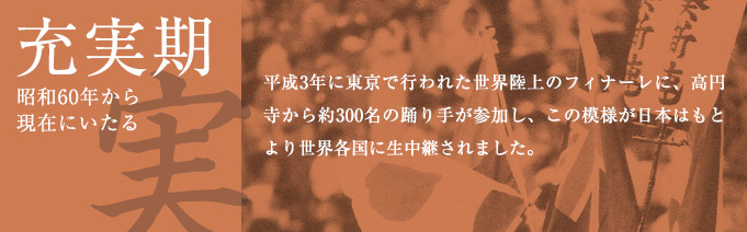 カール・ルイスが男子100メートルで世界新記録をマークしたり、男子マラソンで谷口選手が優勝したりと大いに盛り上がった大会の閉会式に、高円寺から踊り手300名が出演したのである。